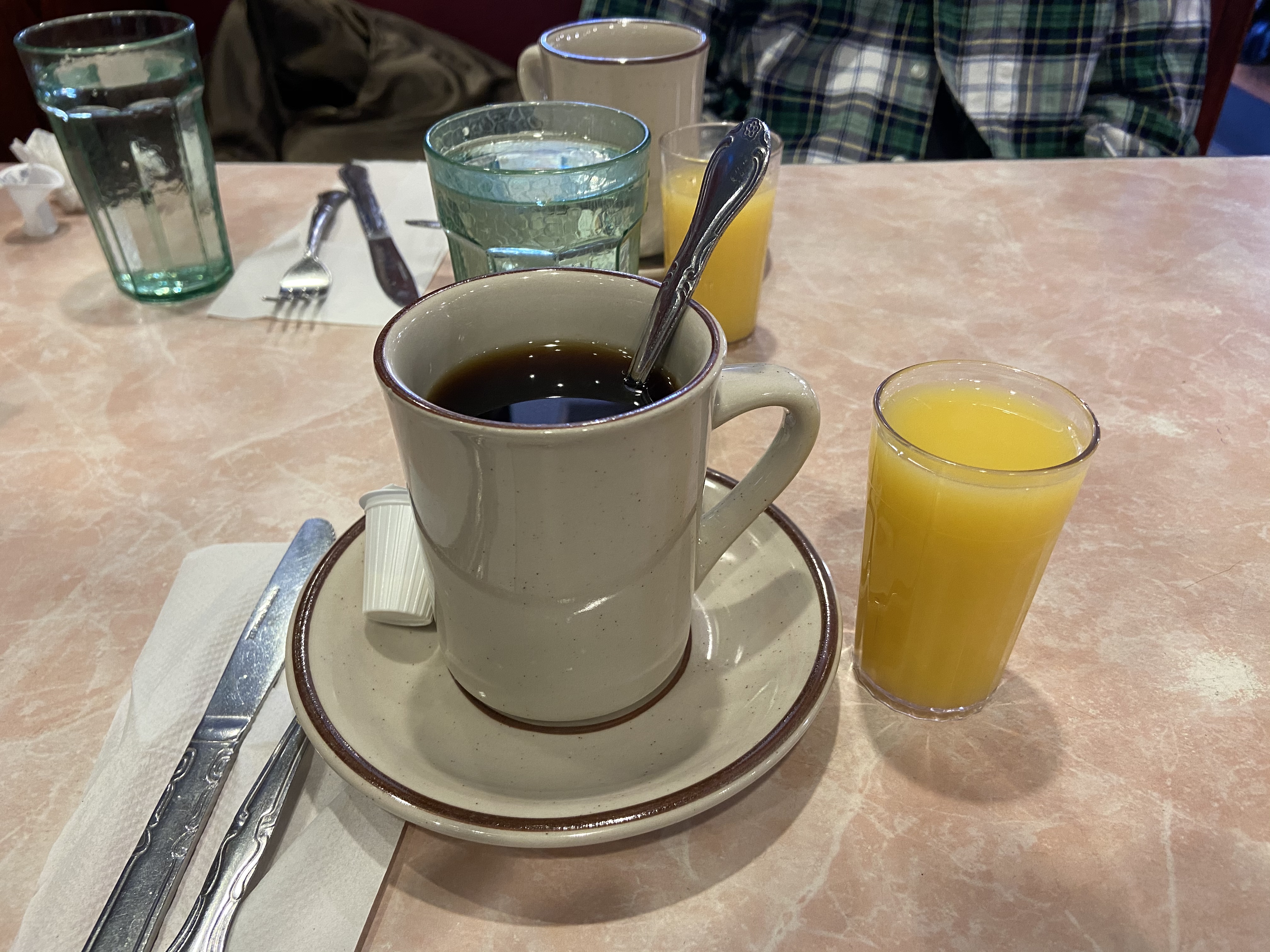 점심 메뉴판을 못봐서 그 차이는 모르겠지만 아무래도 커피랑 오렌지 주스 무료 제공 같은 혜택이 없지 않을까...