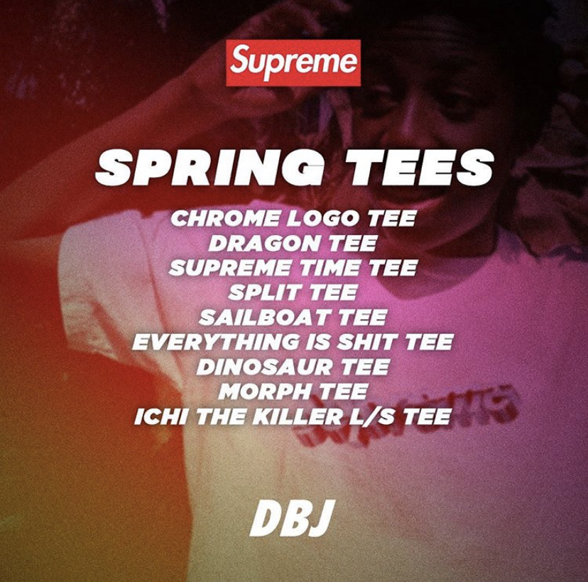 | [발매예정] Supreme 2020 S/S Week8 Spring tee 미리보기 (0) | 2020.04.16 |