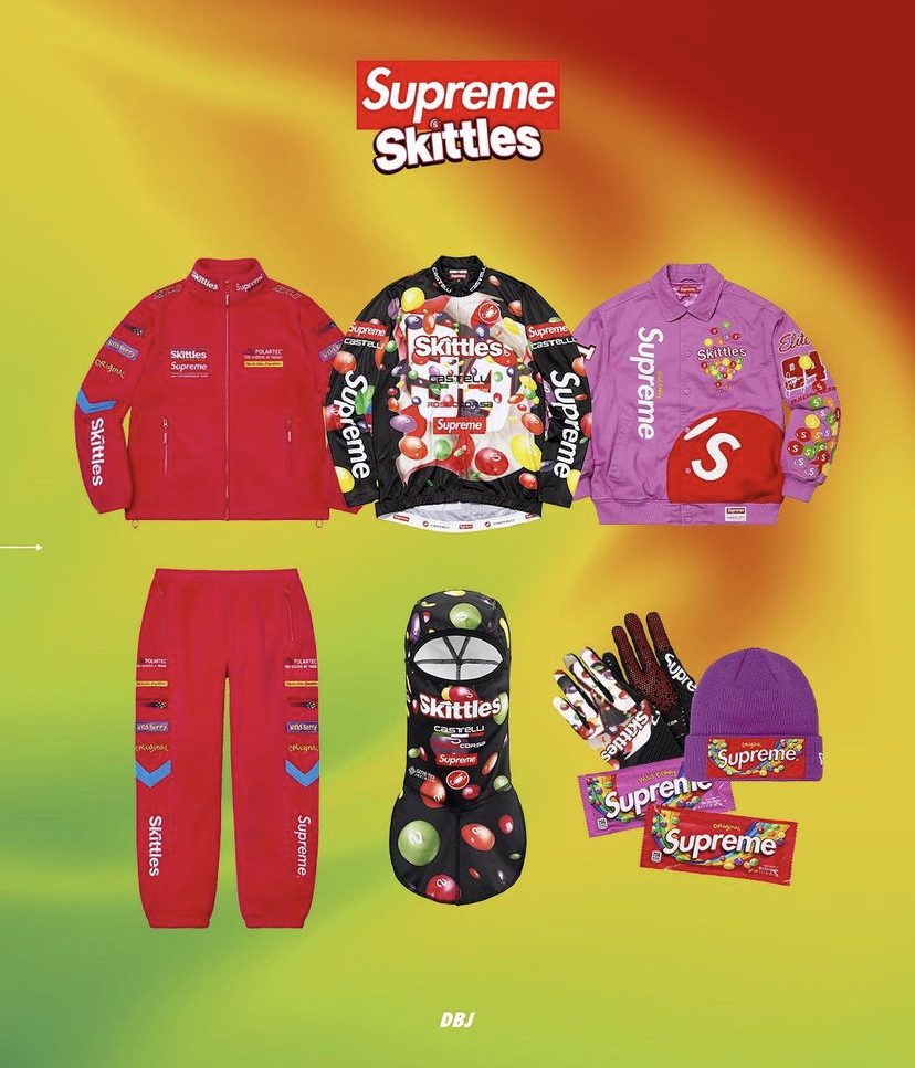 지난 주 시즌 1st 드랍을 진행한 슈프림이 스키틀즈와 콜라보한 제품을 발매 예정이다.