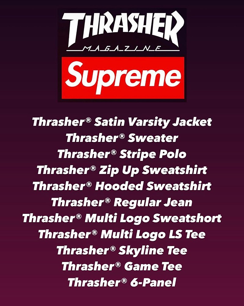 이번 주 23일 5주차에는 브랜드 Thrasher와 콜라보한 제품이 발매할 예정이라고 한다.