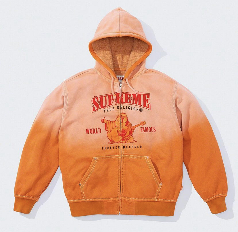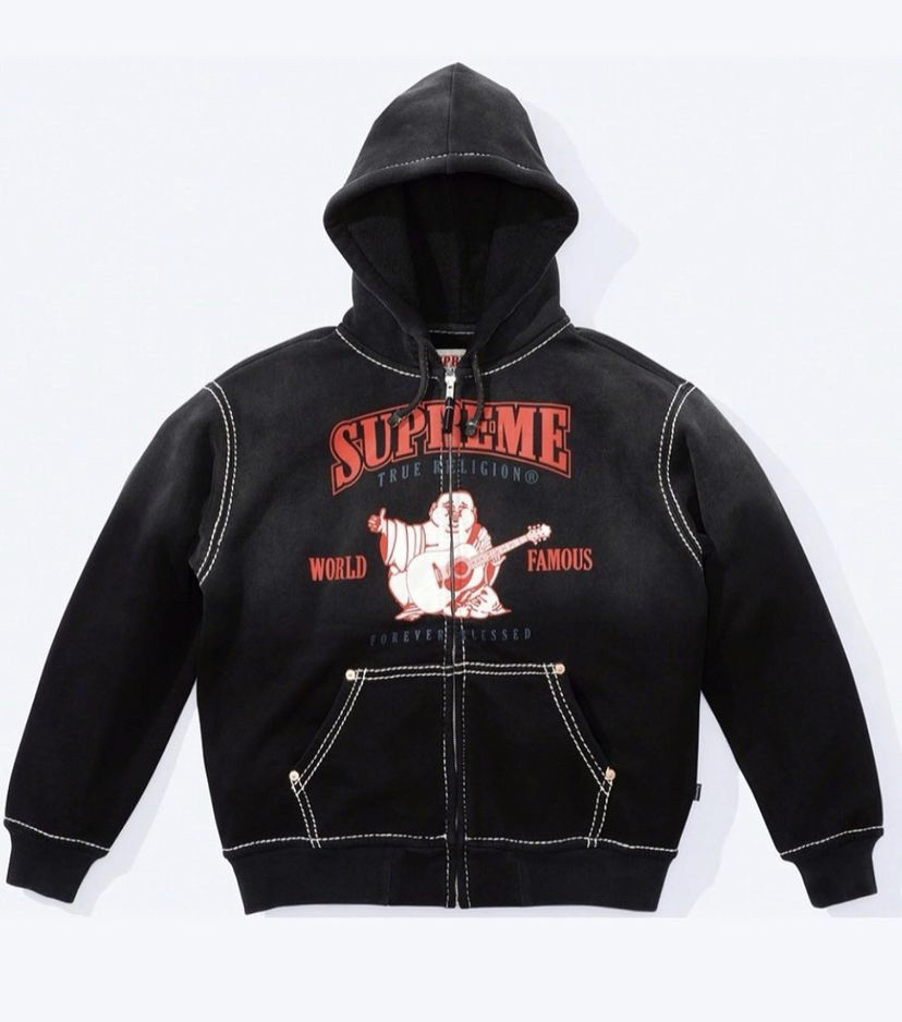 추억의 청바지 브랜드 트루 릴리전(True Religion)과 슈프림이 이번 2021 시즌 콜라보 제품을 발매할 예정이라는 소식이다. 사진 속 후드는 해당 콜라보 제품으로 추정되는 것으로 유출된 이미지로