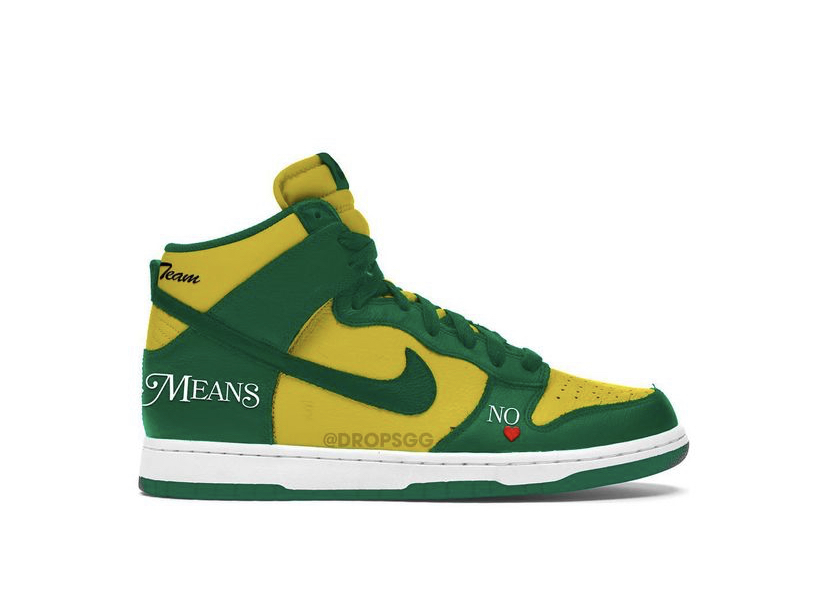 유출된 컬러웨이는 녹색과 노란색의 조합으로 되어있으며 기존 유출된 두 가지 색과 동일한 디자인의 덩크 하이 제품이다.