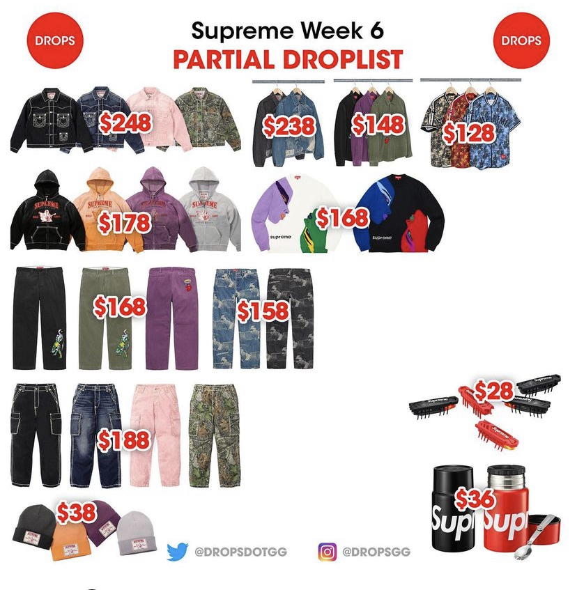 이번 주 목요일 슈프림 6주차 드랍 목록!